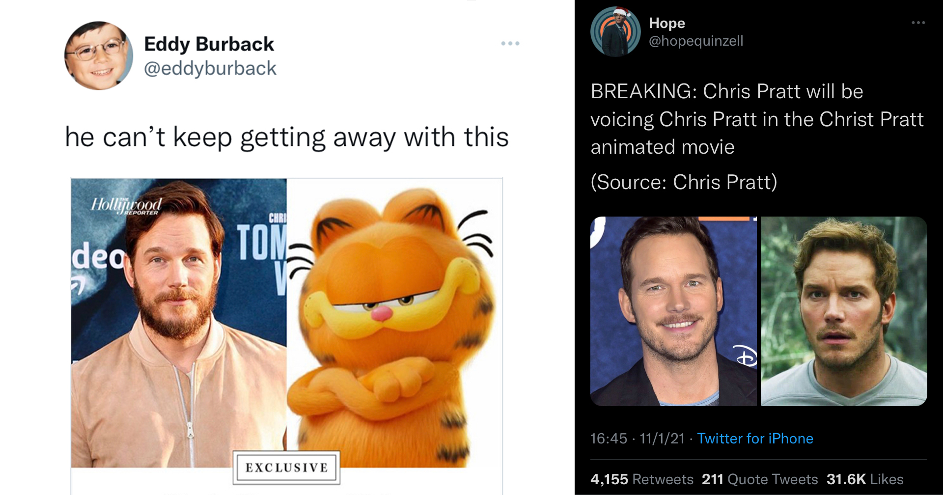 Chris Pratts voice acting in The LEGO Movie is potentially the main reason hes been cast to voice famous animated characters Mario and Garfield. Before becoming a movie star he rose to popularity as a television performer. Animated film and the internet has a lot of opinions about it.